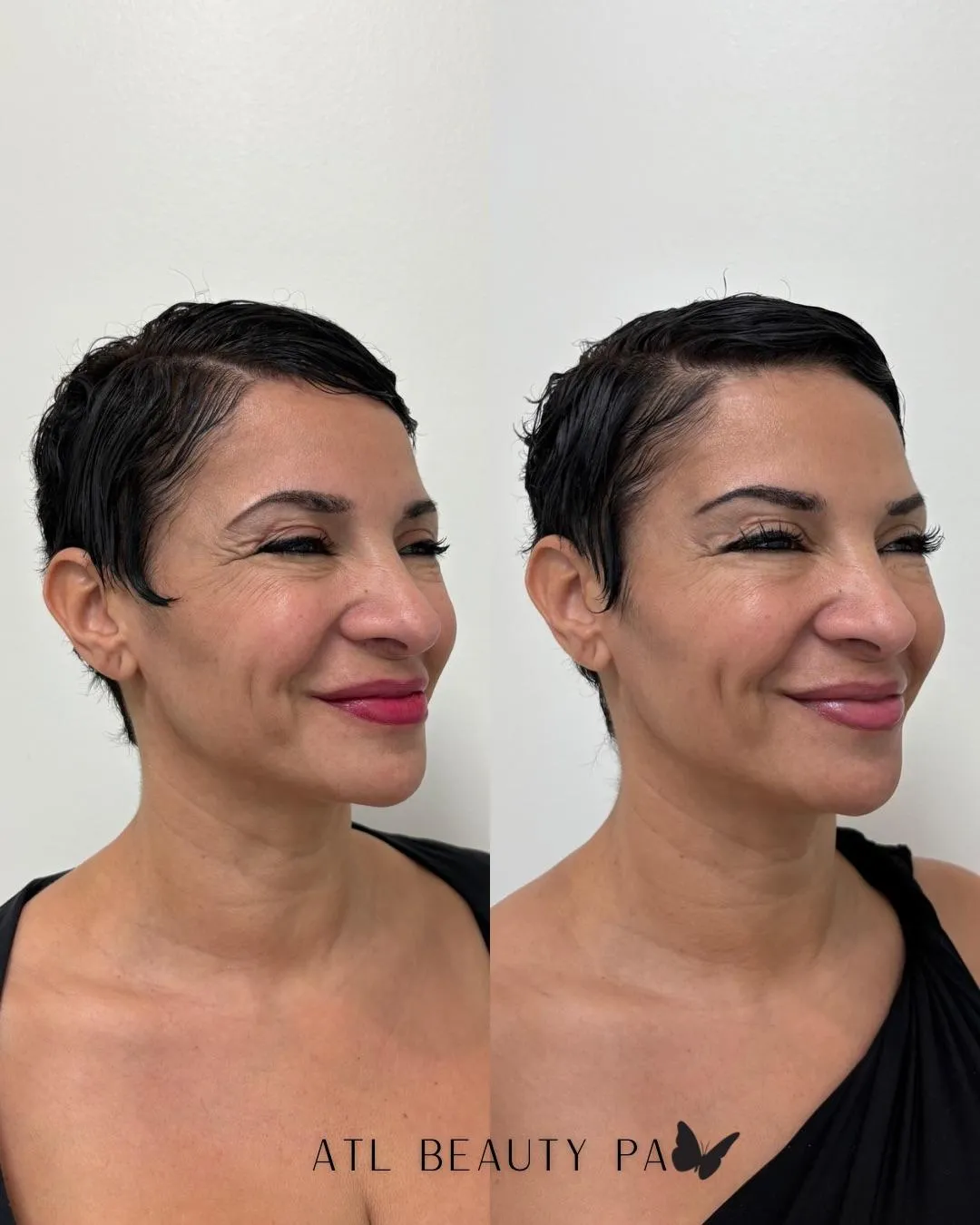 'Tox is a quick, non-invasive treatment that smooths away fine lines and wrinkles, delivering a youthful, refreshed look. By temporarily relaxing targeted facial muscles, 'Tox helps prevent deeper creases and dynamic wrinkles from forming. This treatment is perfect for reducing the appearance of crow's feet, forehead lines, and frown lines, offering noticeable results in just a few days. Our spa uses Botox and Dysport.